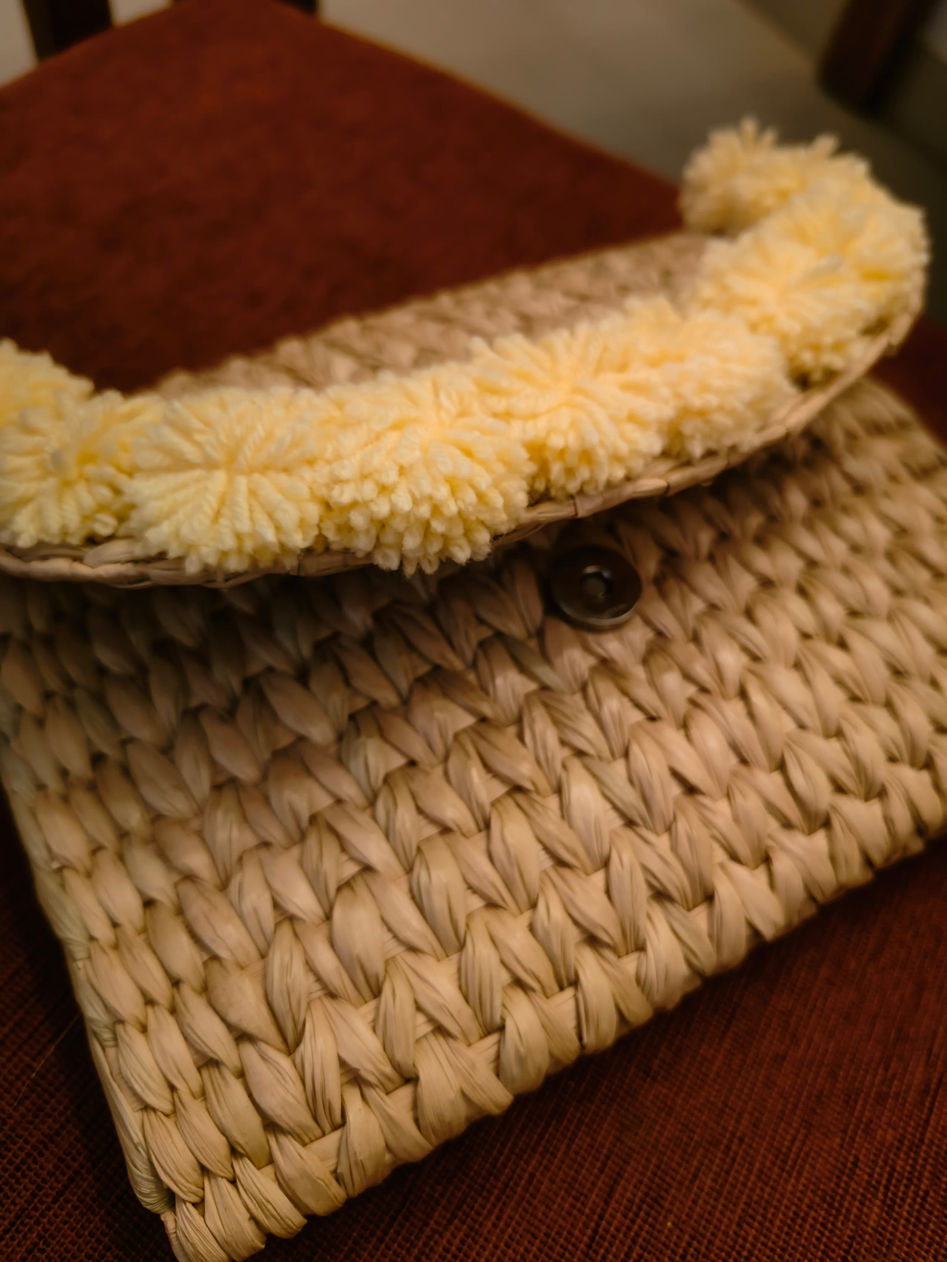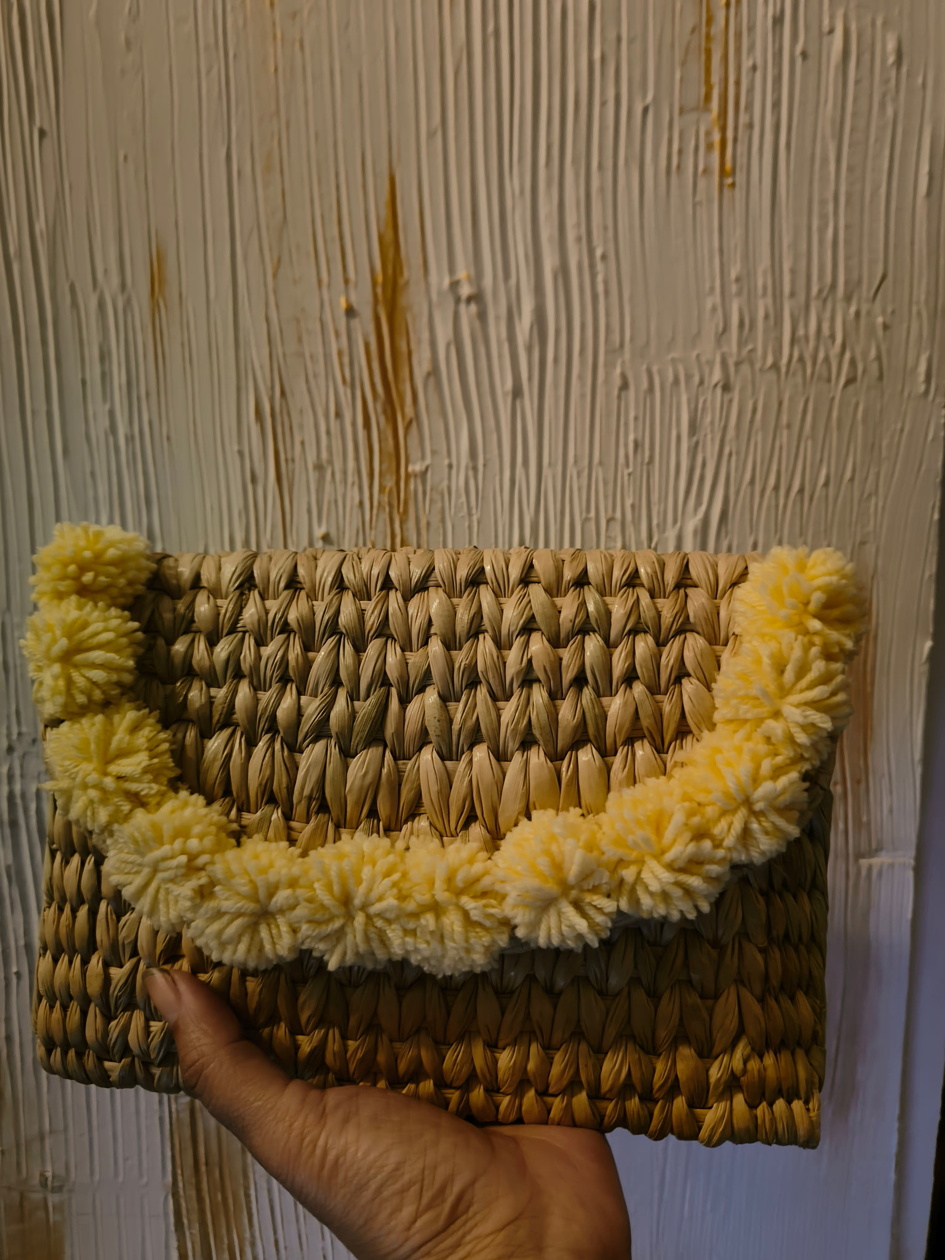 Bring a touch of nature to your style with this charming kouna bag, handwoven from sustainable grass and adorned with delicate daisy embroidery. The cheerful floral detailing adds freshness and charm, while the natural weave gives it a rustic yet elegant feel. Lightweight, eco-friendly, and versatile, this bag is perfect for brunches, casual outings, or as a statement piece for everyday fashion.