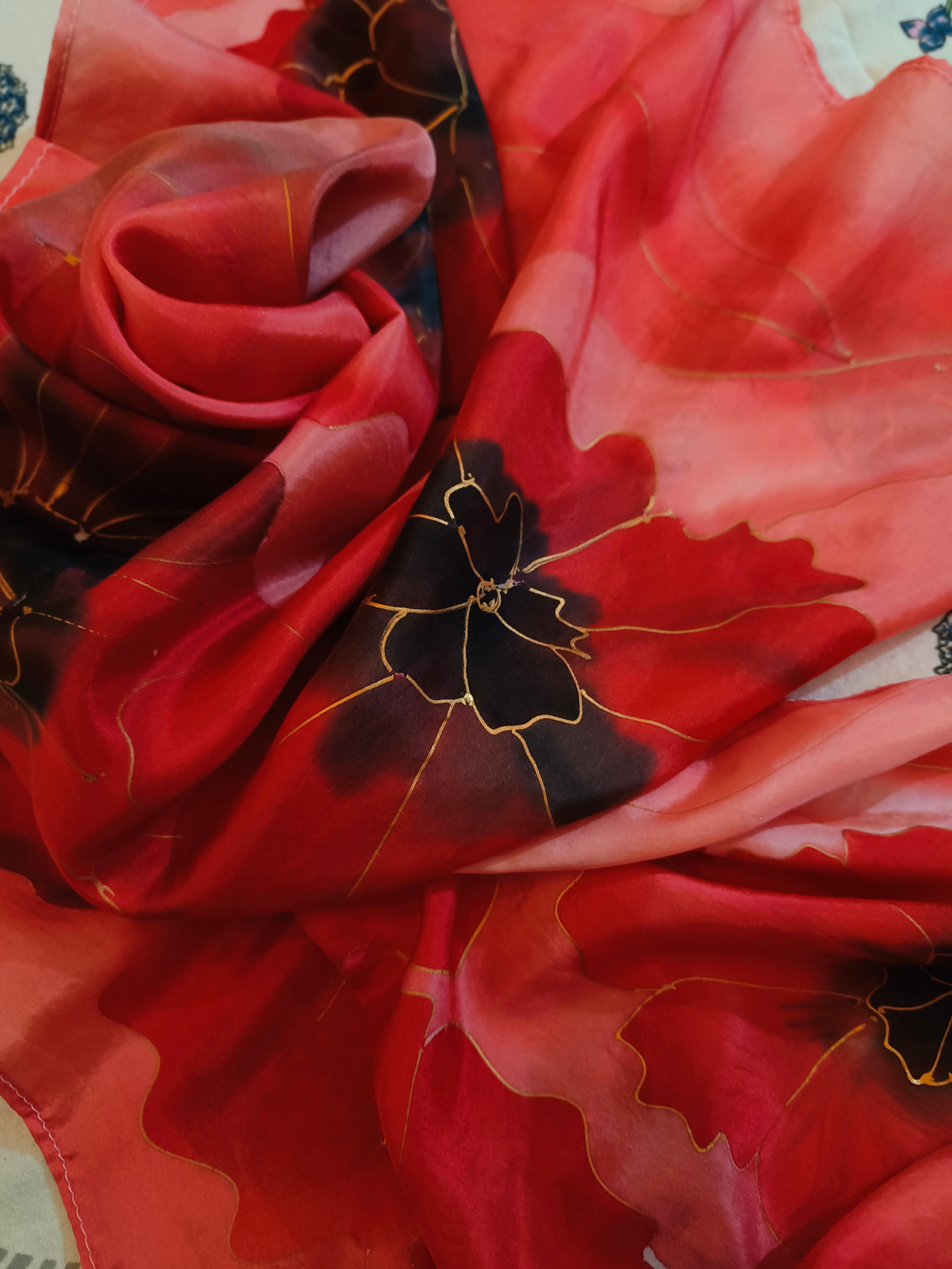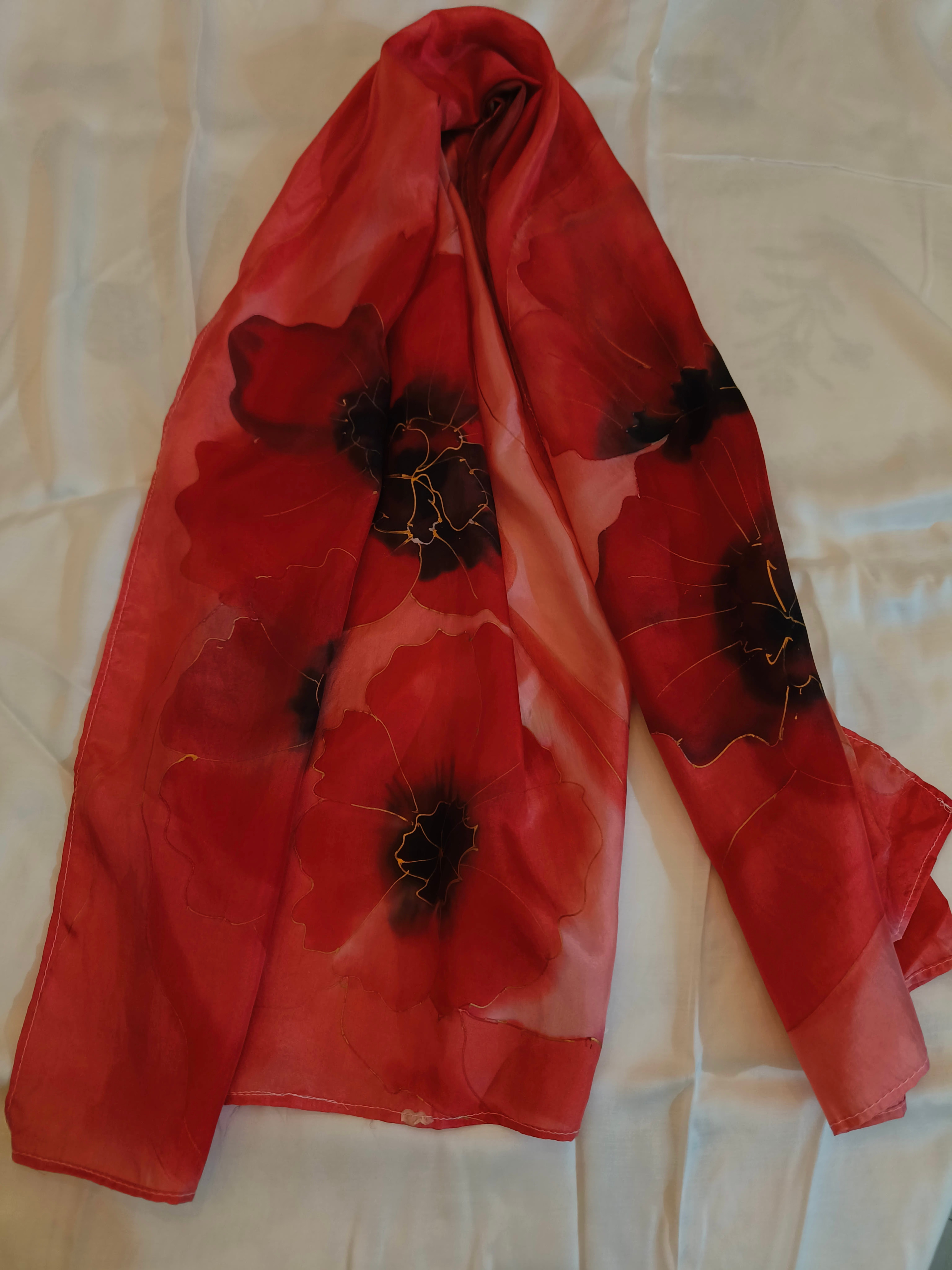 The hand painted scarves is absolutely stunning.My first purchaseband it has been awesome experience with the shipping as well.